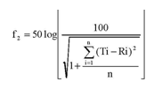 The following equation defines f2. Ti and Ri show the average dissolutions of the test and reference products at the time point (i), respectively, and n is the number of time points at which the average dissolution are compared.
